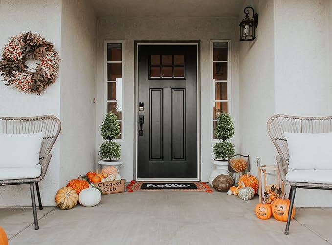 - INDOOR & OUTDOOR | UV & WATER RESISTANT - Faux topiary topiary tree is perfect decoration and deliver the breath of nature. Requires no maintenance, trimming or upkeep. Set on in a corner of your living room or use 2 to flank your front door home decor, this ball shape shrubs give you a pop of color garden / office / home & gift