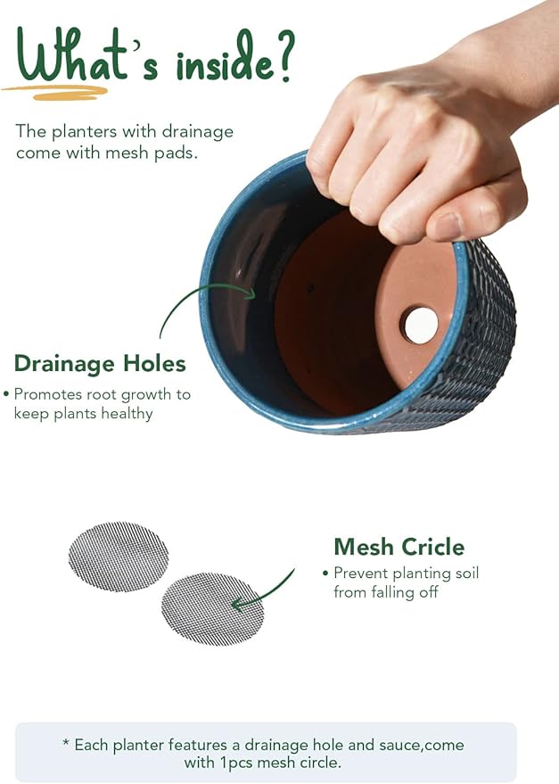 - Thoughtful Accessories: Our pots for indoor plants include drainage hole net and saucers, giving you full control; let roots enjoy moisture while avoiding excess water; seal with a saucers to prevent leaks or use a mesh pad to retain soil and provide optimal ventilation (Plant not included)