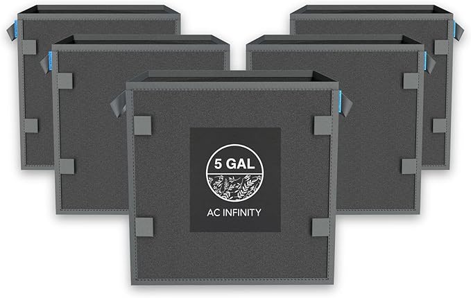 AC Infinity Square Heavy Duty Fabric Pots, 5 Gallon Aeration Reusable Grow Bags 5-Pack with 500G Thick Nonwoven Fabric and Plant Stake Loops, for Garden Growing Fruits, Vegetables, and Flowers