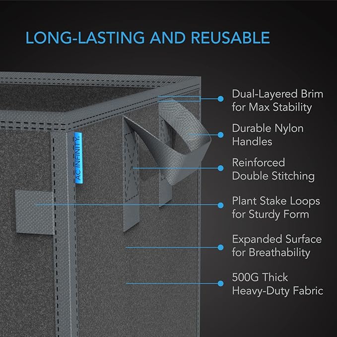 AC Infinity Square Heavy Duty Fabric Pots, 7 Gallon Aeration Reusable Grow Bags 5-Pack with 500G Thick Nonwoven Fabric and Plant Stake Loops, for Garden Growing Fruits, Vegetables, and Flowers