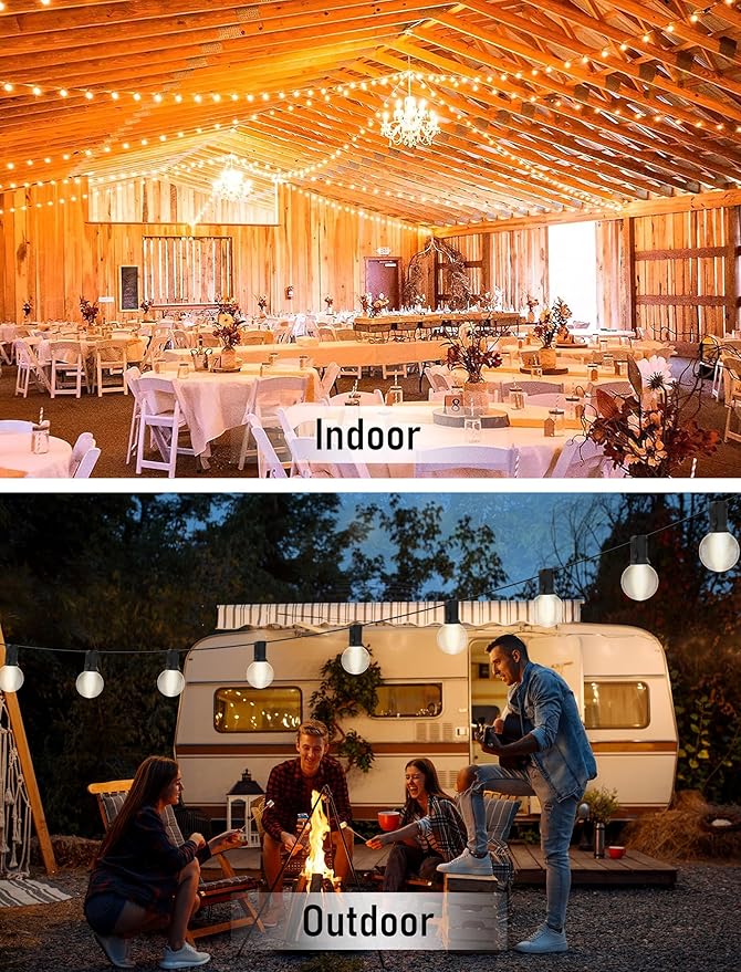 - 25 feet frosted globe string lights with 27 frosted white G40 Edison bulbs, end to end connectable.The frosted white light bulb creates a hazy beauty, which can create a comfortable visual experience and bring a new experience different from the past. Light bulbs have G40 candelabra (E12) socket base, UL listed
