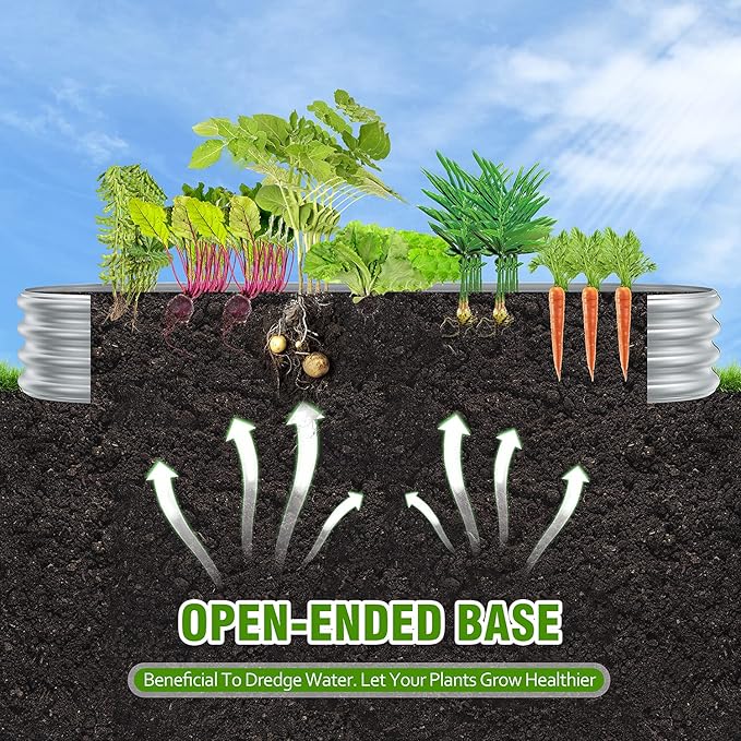 - šOpen-Base Design for Healthy Growth - This open-bottom raised garden bed allows for proper drainage to prevent water accumulation and root rot. The design helps protect plants from weeds while promoting better nutrient absorption for healthier growth.