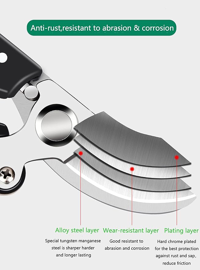 - SPECIAL PROCESS: The blade is quenched and hardened at high temperature,hardness reaches above HRC62, can cut branches up to 1 inch diameter. The blade is hard chrome plated for the best protection against rust and sap, reduce friction, increase smoothness, and extend service life.