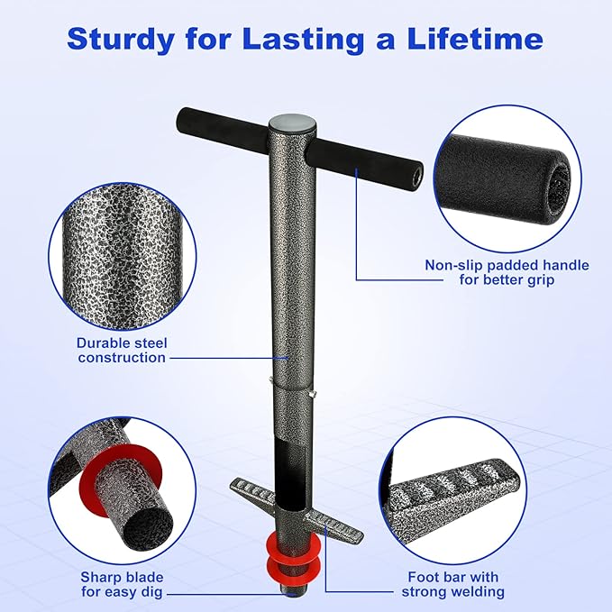 - NO SOIL STUCK IN: You NEEDN’T manually remove clumps of soil stuck in the tube periodically! There is no soil or dirt got stored or stuck in the tool when you dig with the closed slant design of the tube. The process you make soil or sod plugs is a process of emptying the tool.