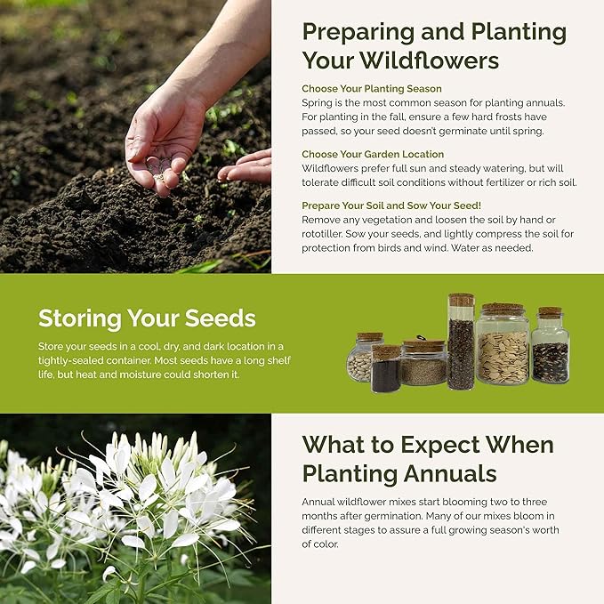 - Attracts Pollinators - With up to 75 square feet of ground cover, this non-GMO seed mix is sure to bring the bugs and birds to your yard! Easily attract bees, butterflies, and hummingbirds to pollinate blooms.