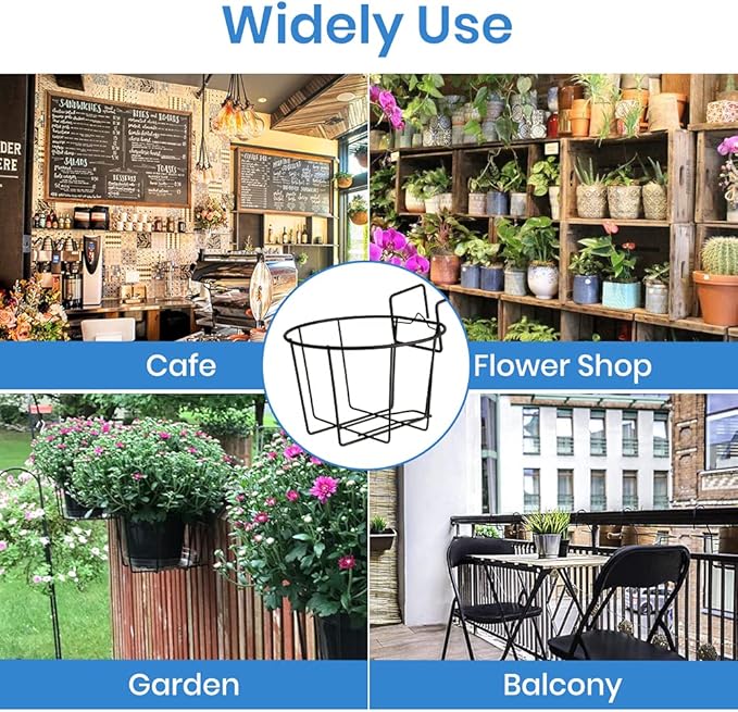 - 【Material】This iron art fence planter has an anti-rust coating, which can serve for a long time. A hanging railing planter flower pot holder adds a decorative touch and creates a sturdy support for your potted plants.