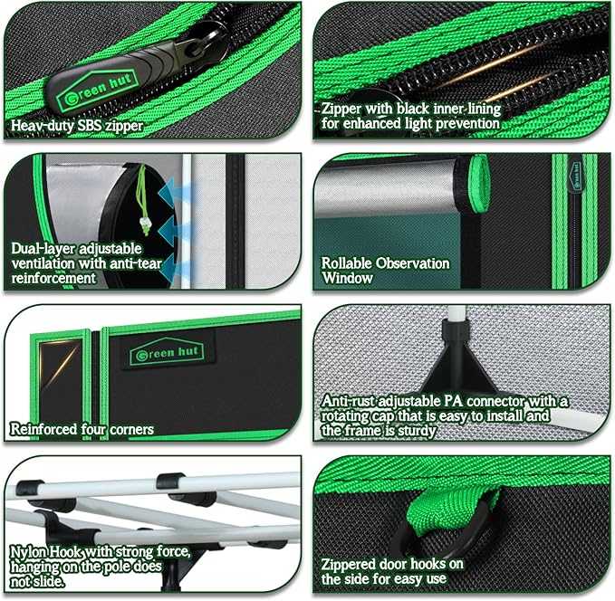 - LIGHT PROOF --- The large heavy duty Zippers & 1.5" ribbon protect the tent from light leaking and ensure durability and long-lasting use. Let you control the climate and lighting so you can grow any plant in any place safely and easily