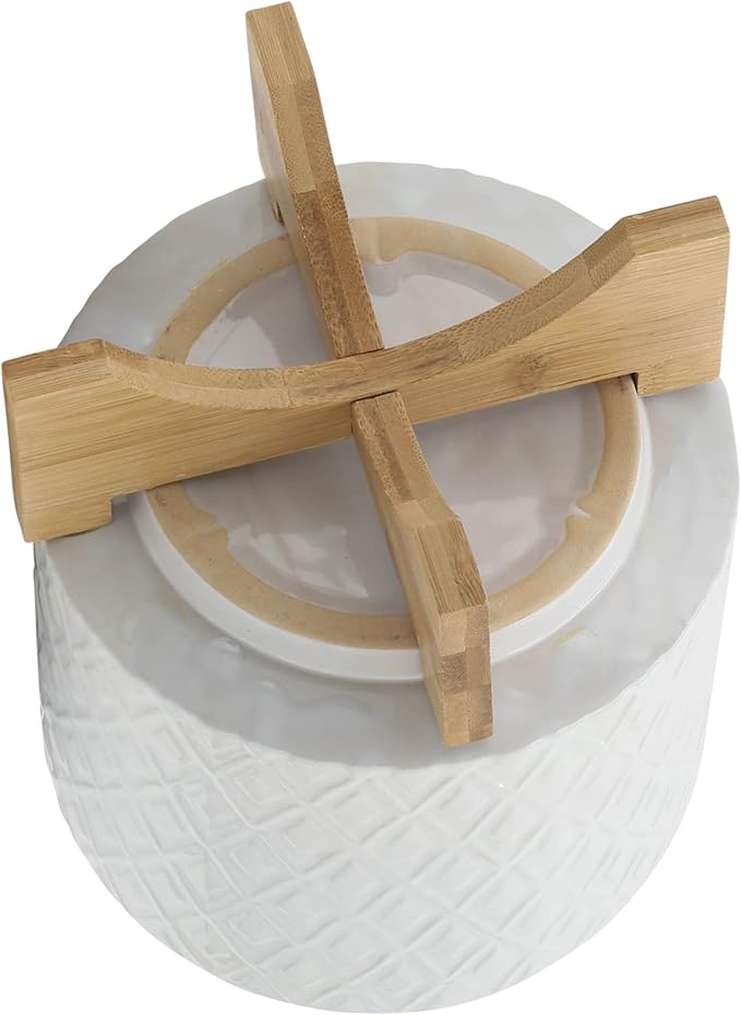 8" Ceramic Planter Stand, White Diamond Design with Wooden Base, Indoor/Outdoor Planter with Stand for Your Succulents and Small Plants