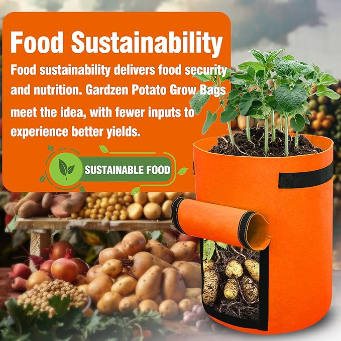 - Premium Quality - Gardzen Potato Grow Bags are made from 300gsm thickened nonwoven fabric material, ensuring durability and long-lasting use. Can be reused for severl seasons.