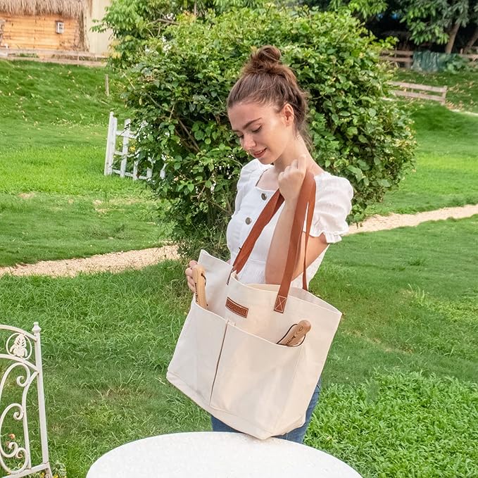 Berry&Bird Garden Tool Bag, Canvas Garden Tote With Pockets, Wear-Resistant Multi-Purpose Tool Storage Bag, Home Organizer Gardening Tool Kit for Indoor and Outdoor Gardening, 21.65" x 7.09" x 13.78"
