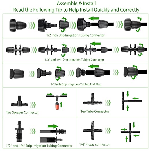 280 Pcs Drip Irrigation Kit, 147FT Garden Watering System 1/2 1/4 in Distribution Tubing Hose Automatic Patio Misting System Micro Automatic Drip Irrigation for Plant Garden Greenhouse Patio Lawn