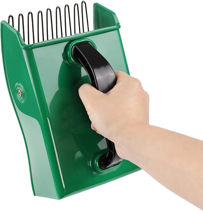 - The metal wires effortlessly comb through the berries bush to pull off berries without pulling the leaves.