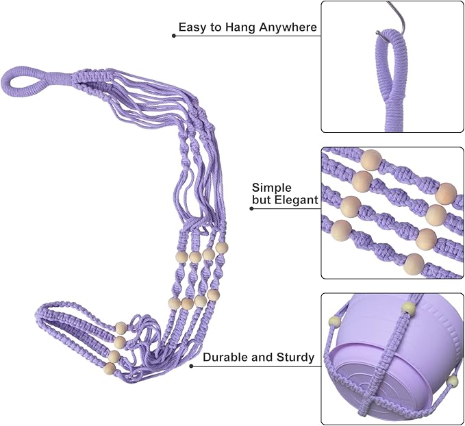 - 【No Tassel Design】- Unlike most on the market, our macrame plant hanger do not have the usual tassel, which not only saves space but is also less appealing to pets, reducing the chance of plants being knocked over.