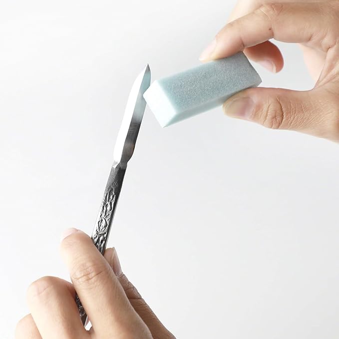 - 【Fine Grain Cleaning】The fine grain sap and rust eraser makes blade surfaces smoother and less noticeable after use than medium grain sap eraser (sold separately), so for small surfaces works best. For bigger tools, we recommend taking both grades so that scratches left by the medium eraser can be removed by the fine one.