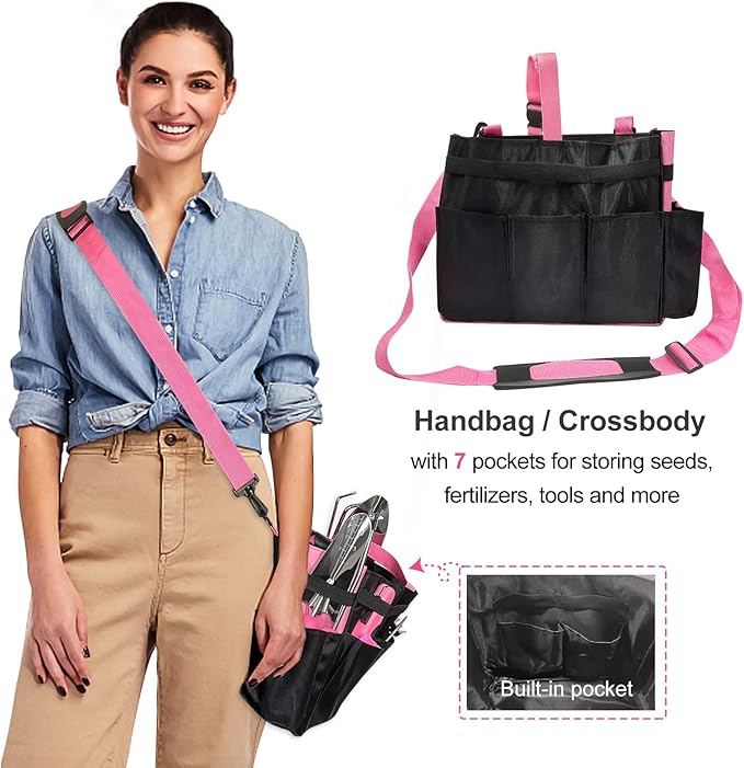 - 🌷【EASY TO CARRY】The storage tote bags are designed to hold all the garden tools so that you won't lose any of them. There are 7 pockets for easy access during indoor and outdoor planting. The tote bag holds everything plus some of your leftover items from home.( Please Note:please lay it in natural air for a few days,if the storage bag has a smell)