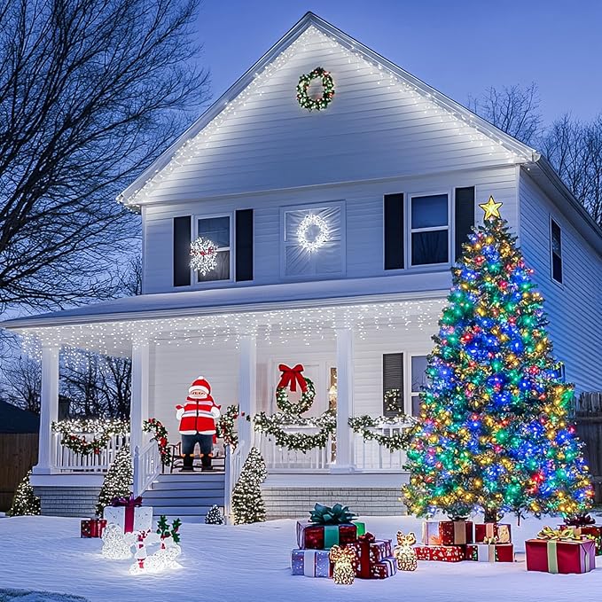 JMEXSUSS 200 LED Christmas String Lights Outdoor Waterproof, 66ft Color Changing String Lights Plug in, Cool White & Multicolor Christmas Lights for Trees Yard Wedding Xmas Party Decorations