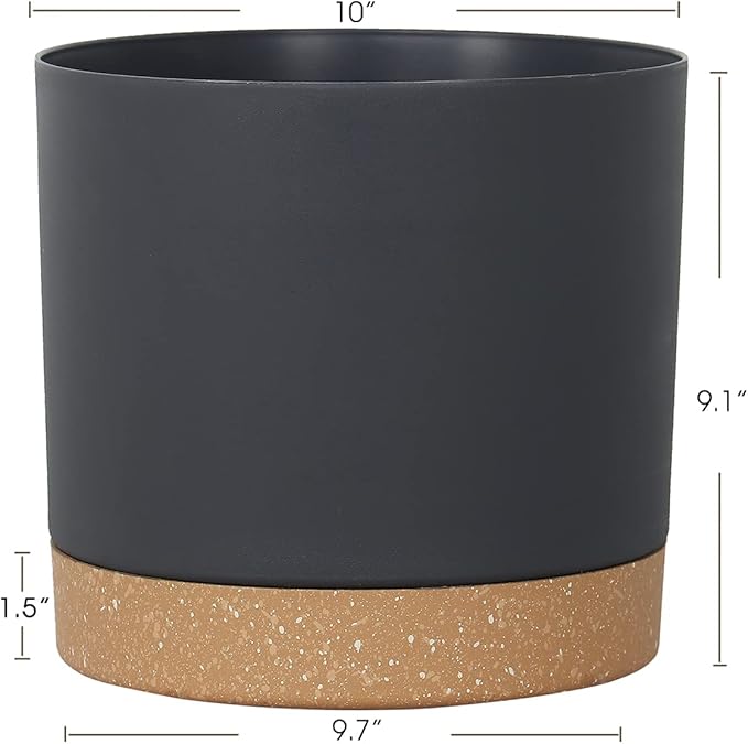 kubvici Plant Pots for Indoor Plants, 2 Pack 10 Inch Plant Pot Plastic Flower Pots Planters with Drainage Saucer for Indoor Outdoor Garden Home (10" Black)