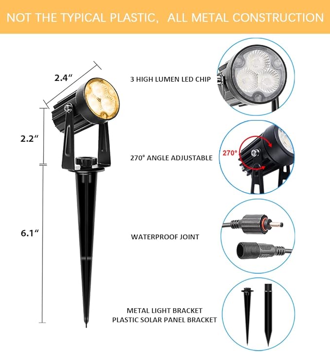 - 【Solar Powered】The landscape spotlights turn on automatically in the evening and power off at sunrise, which removes some irritating manual work.Great for adding accents to gardens or illuminate sculptures, fountains, or trees at night