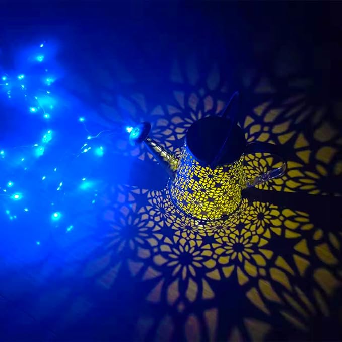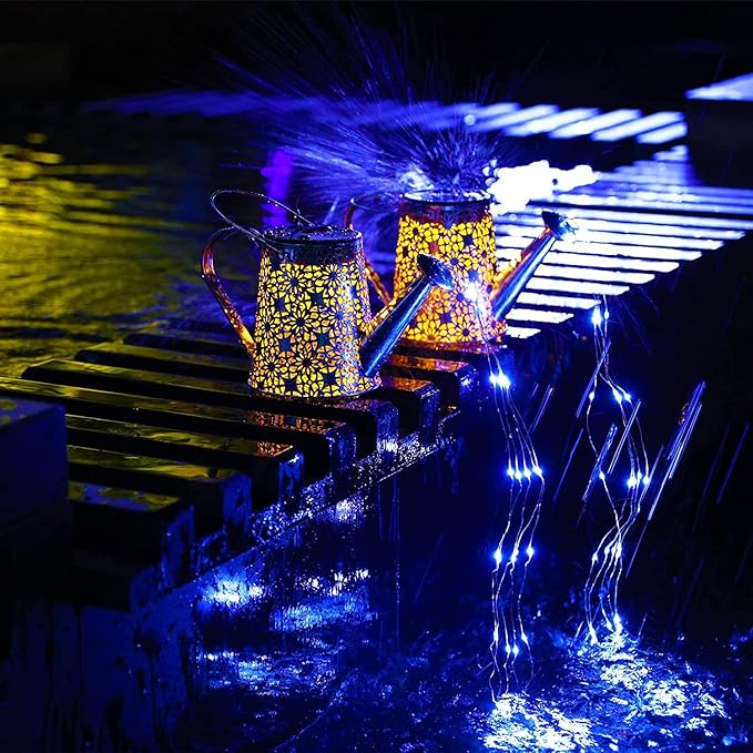 - Suitable for Indoor and Outdoor Use: Vcdsoy's solar watering can lights provide 2 modes of use. You can use the included shepherd's hook to hang it in an outdoor garden and let it water your flowers with flowing stars. You can also put it directly on its own, which is a good decoration for indoor tables, steps, flower POTS or balconies. Note: Please put the power switch in the "on" position when charging during the day, and place the solar panel in a well-lit place.
