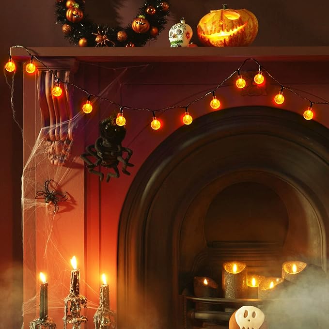 Solar Halloween String Lights Outdoor 60 LED 36 Feet Crystal Globe String Lights with 8 Lighting Modes, Waterproof Solar Powered Patio Lights for Garden Yard Porch Decor (Orange)