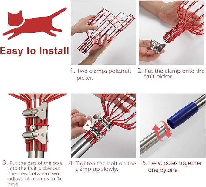 - ▶【Easy to Install】5 mins to assemble this fig picker by screwing all parts together with no extra tools required. Great Timesaver for fruit tree picker.