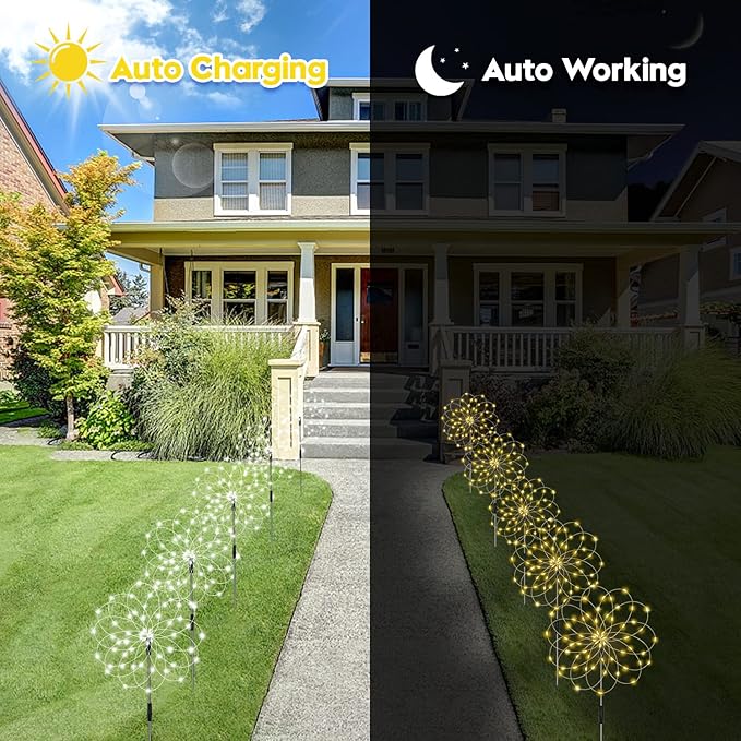 - Perfect Choice: Maleyt Waterproof Landscape Outdoor Decor is the best choice for your neighbors and friends, if you give it to your friends or family on holidays or birthdays, they will be surprised by your creativity and will love them. These solar fireworks lights are suitable for decorating gardens, backyards, sidewalks, flower beds, lawns, terraces, weddings, parties, balconies, walls, Christmas, Thanksgiving, birthdays, etc.