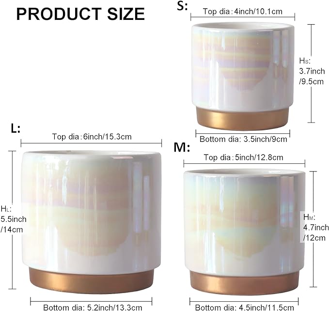 - Rainbow Pearlescent Glazed Design With Drain Holes: The rich color of this ceramic flower pot is covered a rainbowl look. Deep planting space promotes root growth to keep plants healthy. Large drain holes are good for draining, it is suitable for orchids, succulents, cacti, other flowers and green plants, perfect for home decoration.