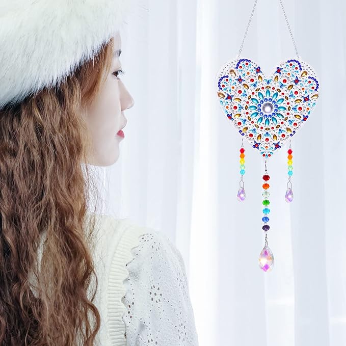 3 Pack Diamond and Painting Suncatcher Window Hanging Ornament Crystal Window Garden Decor DIY Kits for Beginners Adult Kids -Tree, Moon, Heart