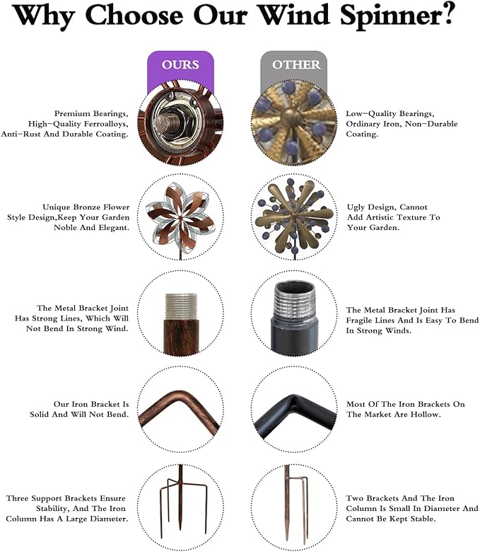 - Edge Blunting: Protect your hands when installing and using kinetic wind spinner, not easy to get hurt. Provide easy-understand installation instructions, you can finish assembling in minutes