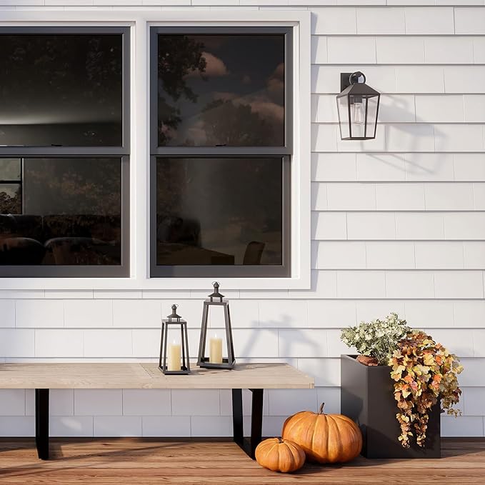 - CLASSIC LANTERN - This traditional style black metal lantern features our most realistic outdoor LED candle. | Dimensions: 6" L x 6" W x 13" H.