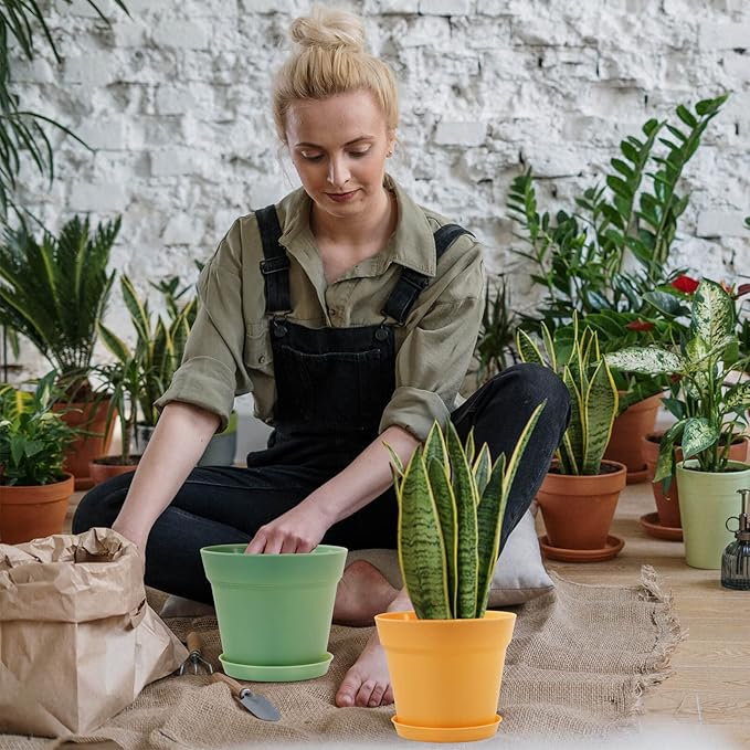 WOUSIWER 16 Pack 6 inch Plastic Planters, Indoor Flower Pots, Heavy Duty and Stylish 6 Inch Plant Pots for Indoor Plants with Drainage Holes and Tray for Plants, Flowers, Colorful