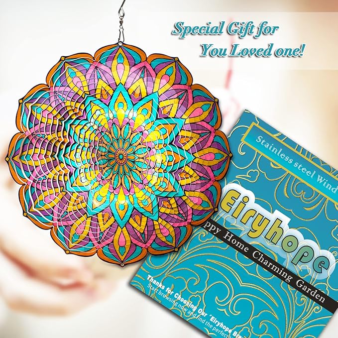 - 【 Easy to Use 3D Wind Spinners 】The garden wind spinner is easy to shape and spin. Its 3D design makes it easy to transform into a 3D hanging wind sculpture. This mandala wind spinner's ingenious metal construction catches more breezes to spin. The 12-inch wind spinner is an eye-catching focal point.