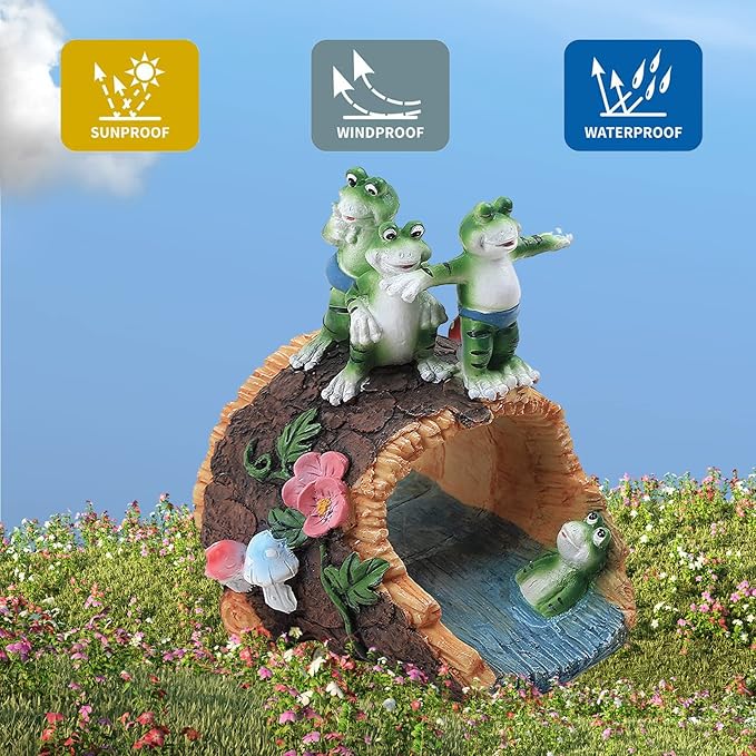 Gardener Frog Gutter Downspout Extension & Statue, Green Granite Frog Guardian, 3 x 4" Downspout Splash Block Extender