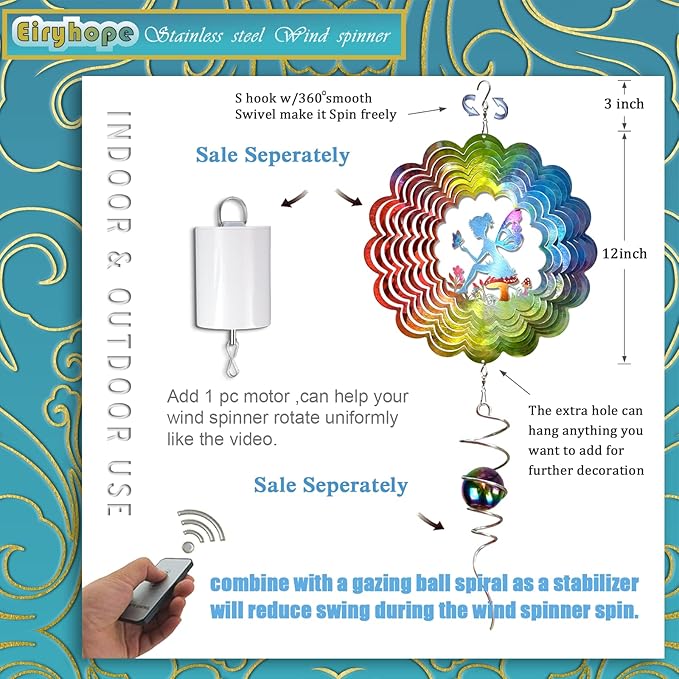 - 【New Inspiration for Wind Spinners】This decorative spinner is sure to inspire your decorating ideas. Fairy spinners can also be used as hanging wall decorations. And you can find new uses for wind spinners, such as a unique holiday decoration to add to the holiday spirit and attract attention.
