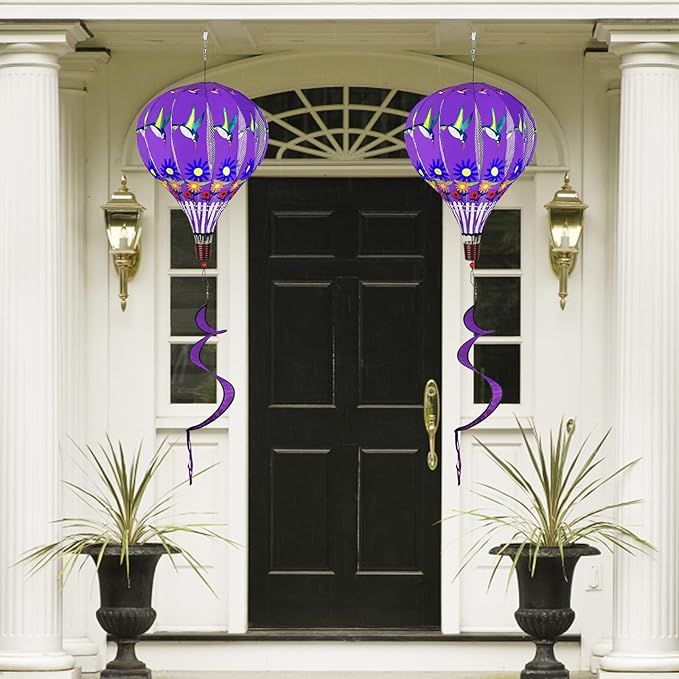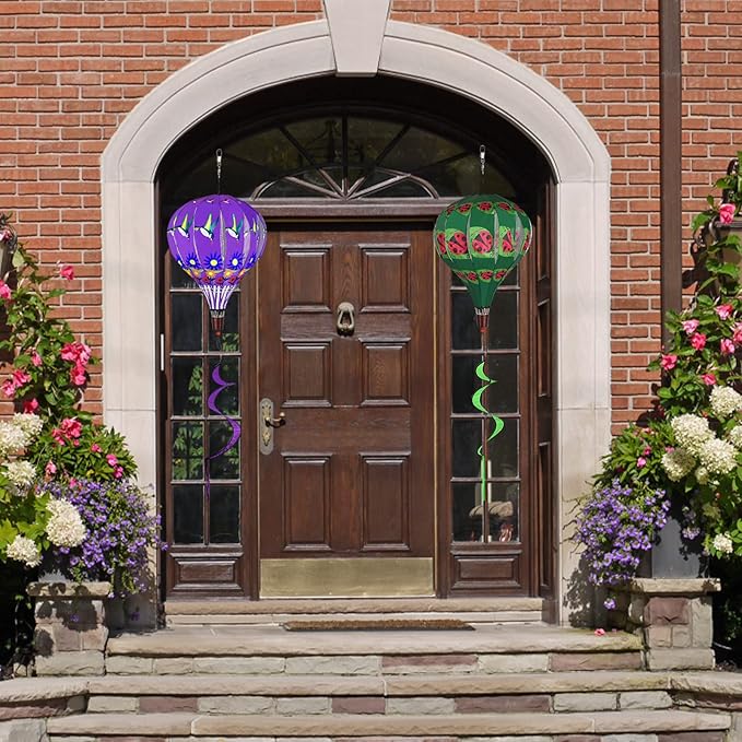 - 2PCS Hot Air Balloon Wind Spinners:Hot air balloon wind spinners with a curly tail, which is colorful and has great visual appeal. Use colorful wind spinner to decorate your courtyard, add eye-catching color and vitality to the courtyard.