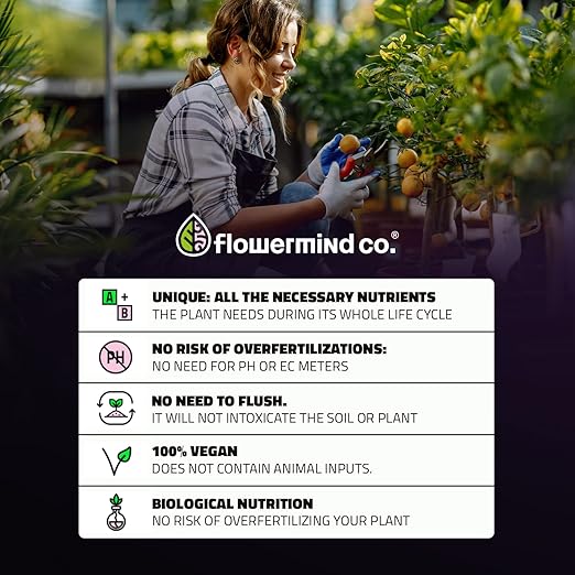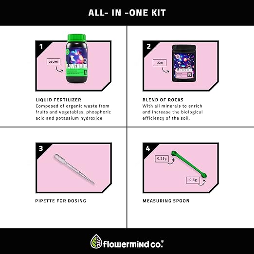 - COMPLETE NUTRITION FOR ALL PURPOSE -Flowermind Nutrition Kit is a nutrient-rich, all-purpose soil additive that can be used for germination, rooting and cloning. It also works well in soil preparation, bringing life and nutrients to the environment.
