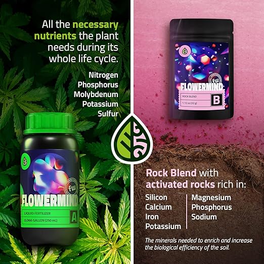 - PLANT NUTRITION AT ANY STAGE - The Flowermind Organic Fertilizer Kit is a one-stop shop for all your plant's needs. It has all the necessary nutrients for the plant during its lifecycle. It also comes with a rock blend that are rich minerals needed to enrich and increase the biological efficiency of the soil.