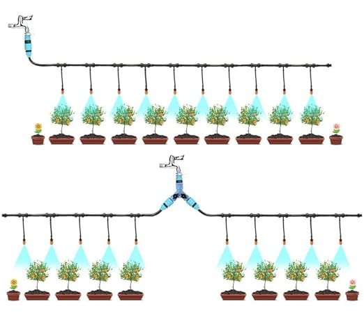 - Adjustable Sprinkler Head: The water flow of each micro sprinkler head nozzle can be individually adjusted to close. Twisting to control spray pressure and diameter, it is very convenient to adjust the watering distance