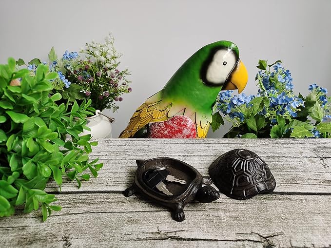 - This cast iron turtle works perfectly to hide a key in the garden. It looks like decorative yard metal art.