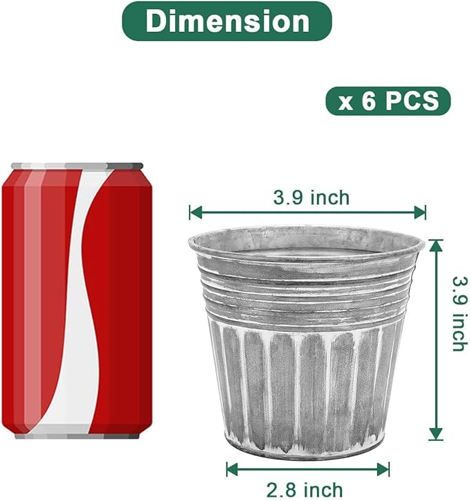 - 【Size of Metal Pots】There are 6pcs metal planters in a package, Topper opening diameter 3.9 inch, bottom diameter 2.8 inch, barrel high 3.9 inch.