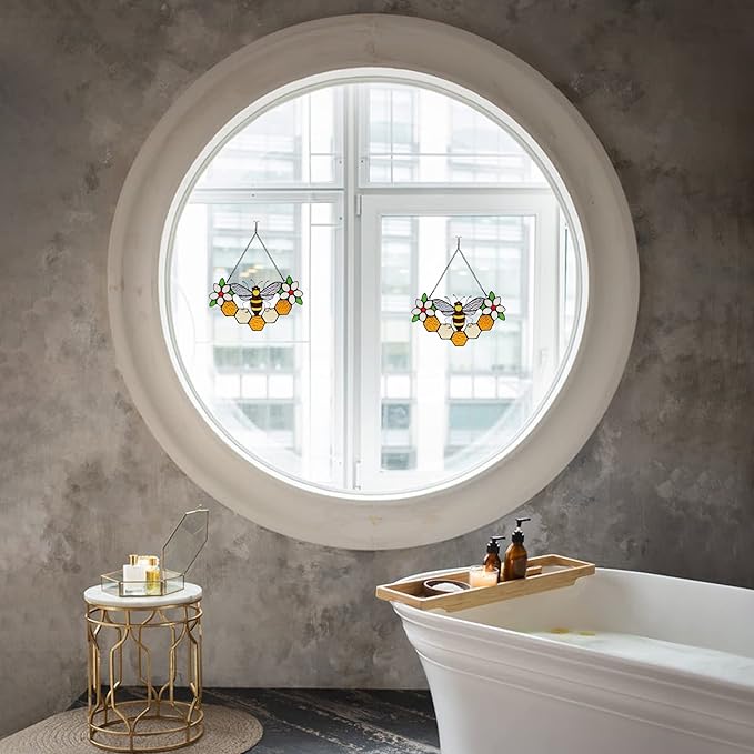 - WIDELY USES:The bumblebee stained glass window hangings and wall hanging could be the perfect decor for your home and garden. Wherever the place is a bedroom, Living room or bathroom window, Balcony, Garden or courtyard.And hang it on the window to prevent bird strikes.Add fun to your family.