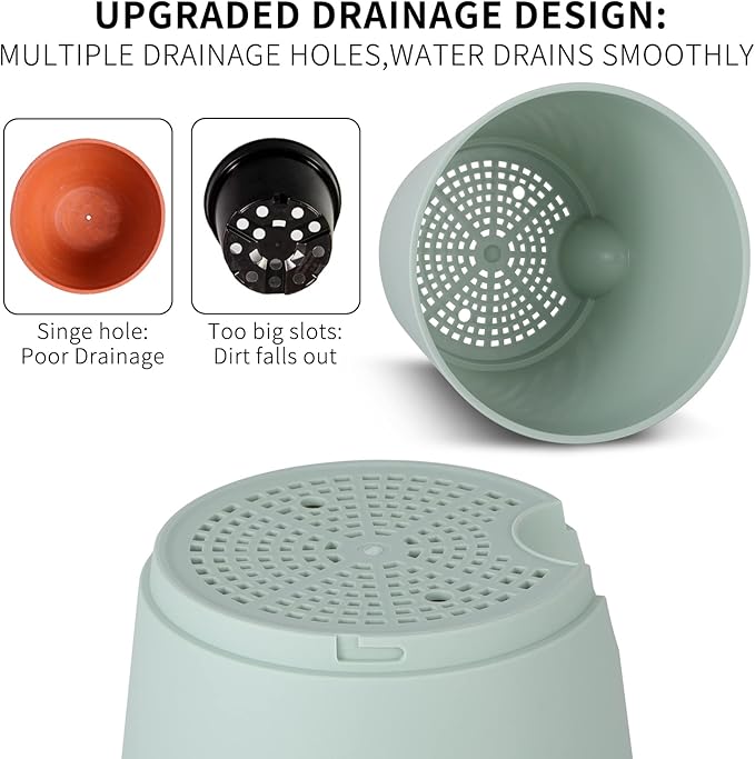 GARDIFE Plant Pots 8/7/6.5/6/5.5/5 Inch Self Watering Planters with Drainage Hole, Plastic Flower Pots, Nursery Planting Pot for All House Plants, African Violet, Flowers, and Cactus,Green