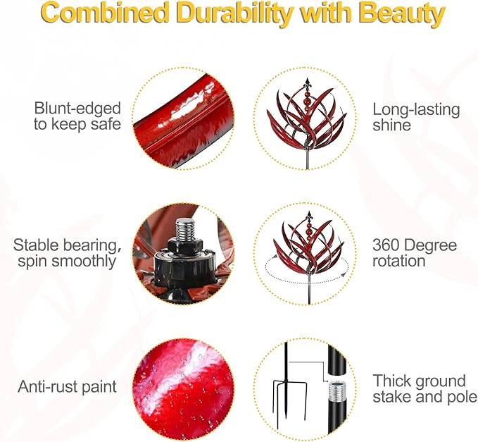 - 【Combined Durability with Beauty】Dual ball bearing movement, 360 Degree rotation, no noise interference. This beautiful garden wind spinner is crafted from sturdy material to last for seasons to come