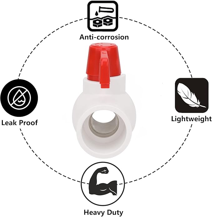 - 【Material】4pcs Heavy Duty 1 Inch PVC Ball Valve made of high-quality PVC, high-impact strength, resistant to frost and corrosion, long service life.