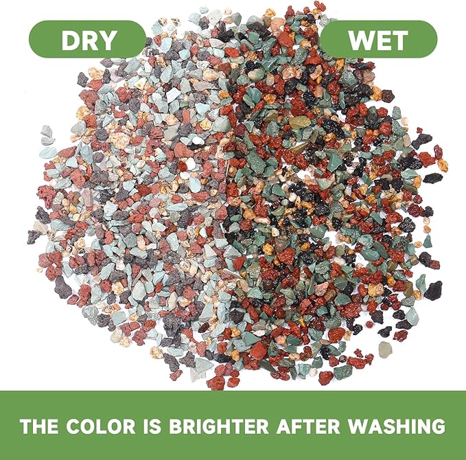 - 【Beautiful Color】Our 100% natural potting blend contains Red Lava Rocks, Black Lava Rock, Hard Maifanitum, Maifanitum, Diatomite, and Green Zeolite, coming in a variety of colors, making it perfect for adding a pop of color to your terrarium or fairy garden.