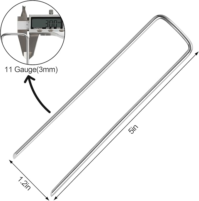 - Versatile: Garden Staples Suitable for family houses, schools, outdoor activities, Christmas decorations, and golf courses. Using galvanized Yard stakes nails anchor landscape fabric nails, secure and install various items such as weed barriers, sod, Christmas tents, fences, cages, netting, tarps, hoses, wires, Christmas lawn, and other items on top.
