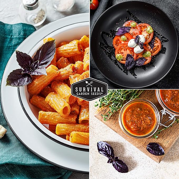 Survival Garden Seeds - Opal Basil Seed for Planting - 2 Packs with Instructions to Plant and Grow Delicious & Unique Purple Basil Herb Plants in Your Home Vegetable Garden - Non-GMO Heirloom Variety
