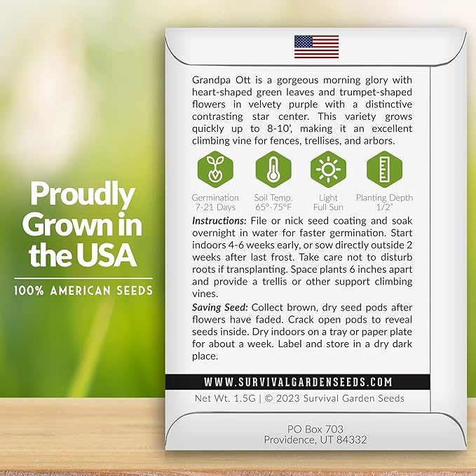 Survival Garden Seeds - Grandpa OTT Morning Glory Seed for Planting - 2 Packs with Instructions to Plant and Grow Ipomoea Purpurea in Your Home Vegetable Garden - Non-GMO Heirloom Variety