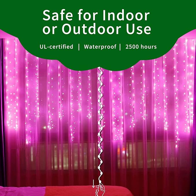 - 【Green Wire Christmas String Lights Decoration】:300L traditional incandescent Christmas light set,63.8Feet Pink Christmas Mini String Lights,each 150Light set include 5 Extra Bulbs & 2 Replacement Fuses.Perfect for indoor and outdoor decoration.Plug in,put it where you want,watch and enjoy this light.The light can be reused for many years.