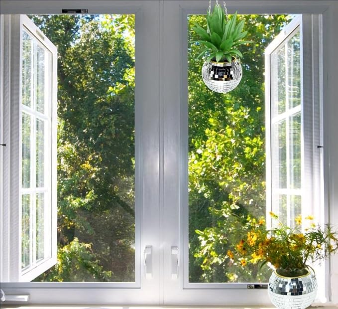 - 【2 Packs of Discoball Planters】You will get 2 packs of 6" disco planters which come with 2pcs strong steel chains and 2pcs hooks. You can put one in the bedroom and one in the living room. Buying two packs will save you money